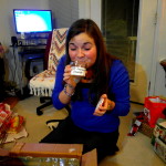 Der nächste Morgen begann für mich, nachdem ich mit meiner bei Oma versammelten Verwandtschaft geskypt hatte, mit einem richtig schönen Weihnachtsfrühstück: Selbst gemachte Waffeln mit Sirup, Himbeeren und Bacon. Mit meinen Mädels wurde dann auch nochmal geskypt. Zu Mittag gab es später lecker mexikanisches Essen. Während des ganzen Tages hatten wir Besuch von Violet (einer Freundin von Zhenzhen, die aus Japan kommt und im Studentenwohnheim am College lebt) und Bene.